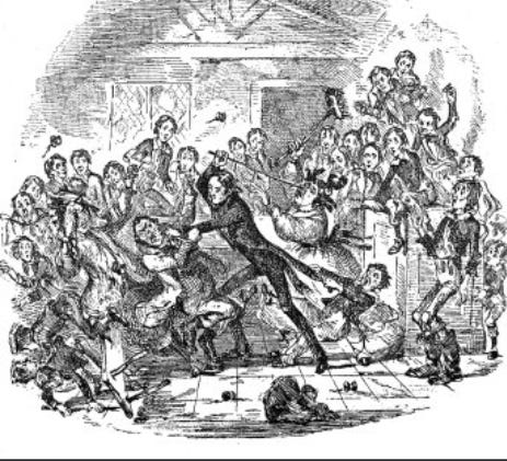 There were wars between the houses that would occur spontaneously, with the house Father cheering his boys on. War consisted in throwing whatever was in season: snow, crab apple, in a pinch, gravel from the driveway.