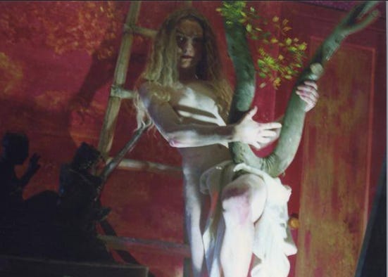 We lived on sixth across from Phoenix House and Joe Dallesandro who the girls liked to harass with 'accidental' naked shows. I'm remembering a night after we had broken up, bumping into her at the laundromat. There were fire trucks, the apartment above the Laundromat was on fire, smoke pouring out, ladders, hoses, the whole scene and Carla suddenly appearing her eyes amazingly vivid, green. [I didn't know she had gotten tinted contacts] She was friendly which surprised me and made me leery. The last time I saw her she threw a bowling ball down the stairs after me. We talked for a bit, a crowd gathering to watch the fire. Then she got agitated checked right and left and made a beeline for the laundromat door, stepping over the hoses, to check her clothes in the dryer. For some reason it was a signal to me that it was going to be OK that we broke up, that I wasn't going to miss her the way I did when we were together and she ran off for days. That was the last time I saw her for years, bent over, her head in the dryer plucking at her clothes, the building burning merrily above her.